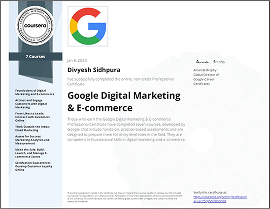 Divyesh has shown proficiency in Keywords Research, On-page & Off-page SEO, Google Ads Campaign Design & Management, and Website Interface Optimization. He is found proficient and ordered in his work. We wish him good luck for all his future endeavors.